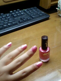 さっき塗ったネイル。桜貝みたいな爪って憧れるけど、
