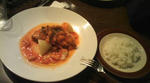 スープとサラダがセットで付いてきて、メインはトロトロの鶏肉にトマトソースのお料理。